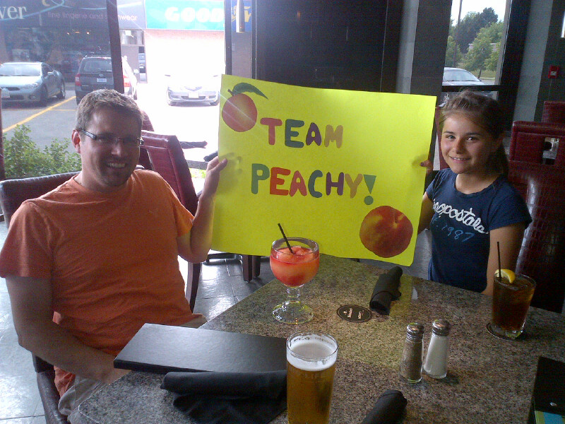 I was notified by a colleague that a friend of hers recently lost her foot to cancer and that a campaign to support her and create was awareness was on. I was inspired by the website and decided to join the cause. Her name is Beth and her nickname is “Peachy”, so my daughter and I hit the streets and kitchen with our “Team Peachy” sign.