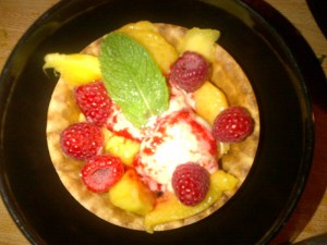 Dessert was a twist on a peach melba which I aptly named “Peach Beth”. I added fresh mango and mango ice cream instead of vanilla.