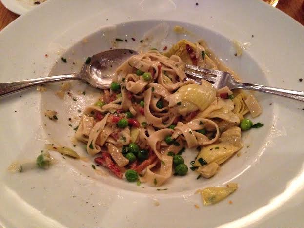 For the main I ordered the fettuccine with sweet peas, artichoke, pancetta, and crotonese ($20). The pasta was nicely cooked but the dish was too oily and the artichoke pieces were rather large and took away from the taste of the rest of the dish.