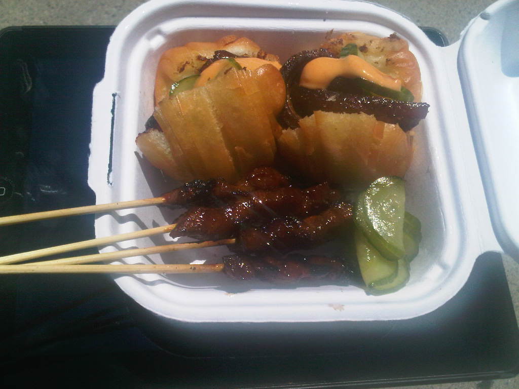The concept is simple; take freshly cooked buns and stuff them with something fun. While in line, I had “food truck fear”,meaning as time goes on and you are paralyzed in line, there is the increased risk of diminishing options. My fear was somewhat realized when the black tape came out and the elk bun was scratched from the menu like a race horse with a last minute injury. That said, when I reached the front of the line I still had three choices.