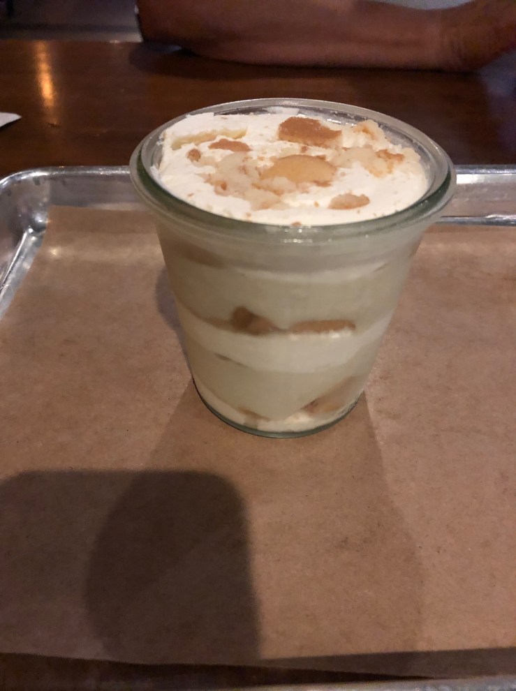 Mabel’s is called Cleveland barbeque, meshing American smoking with Eastern European influences including kielbasa, sauerkraut and spaetzle. At the time of my visit, the website boasted a Sunday happy hour but this has recently changed to Monday-Friday and wasn’t updated so I was stuck ordering wings and cracklings (puffy pig skin) at full price. I threw a half pound of smoke turkey and some baked beans into the mix which arrived on a metal tray along with pickles, rye bread and chip dip. I felt the four choices were like the cardinal directions on Mabel’s map representing a bit of everything BBQ. In particular, the turkey was a far cry from the normally dry holiday mess and was full of subtle smoky flavour. Personally. the chip dip was unnecessary and the bread was a slightly dry and unneeded touch that weren’t as appreciated as the rest of the condiments. The banana pudding for dessert was spot on but I’m also highly biased based on my unnatural love for nilla wafers. Looking back, Nilla would have been a cool name for my daughter but I would never her tell her she was named after a cookie or that her name was short for vanilla although it may be a compliment given the fact the vanilla bean seems to be the frankincense or myrrh of this millennium.