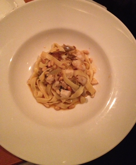 How can you go wrong with fresh tagliatelle with octopus, pine nuts and a tad of prosciutto? The $16 appetizer size hit the spot. The pasta was delicious. It wasn’t overly greasy and the additions had good textural contrast.