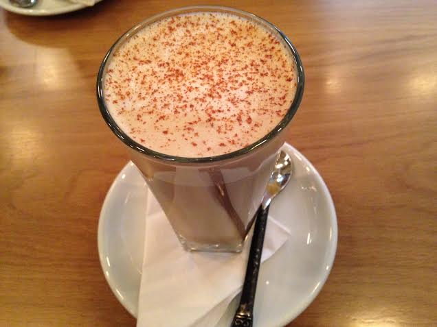 The list of beverages included the standard lattes and americanos but I was interested in the dirty chai. I think I’m drawn to dirty things, so I had to ask. Turns out it’s a chai latte laced with espresso which, according to the barista, balances the normal overbearing sweetness of a normal chai tea latte. Sounded good to me, so I ordered a medium for about four bucks. With a skill which was second nature and while discussing the ridiculousness of vegetable bread, she produced a great drink complete with the signature leaf decoration on top. I quite enjoyed it and went up for seconds. The cheese croissant was pretty good as well.