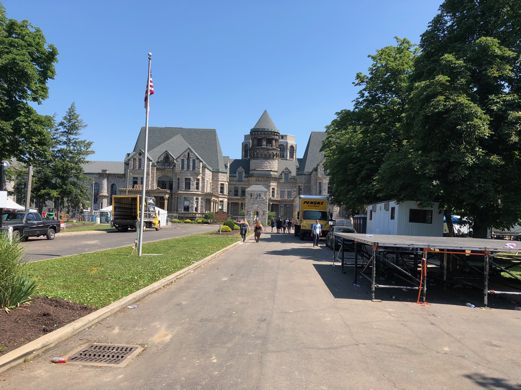 One can tour the reformatory for $15 and we got lucky because it was the first day it was open following the concert (they were still disassembling the stages and cleaning up the grounds when we arrived). The tour is a peek into the history of the Ohio penal system with a number of Shawshank references scattered throughout. One gets a bit gobsmacked (or is it Godsmacked) viewing things like the electric chair, shanks (made from spoons, pencils and other routine prisonware) and the eerie symmetry of the numerous cells stacked on top of each other. In regards to the movie, you can also the warden’s office, the infamous “Brooks was here” room, the solitary confinement area where Andy spend a lot of fine as well as the tunnel that was used for his escape. Cardboard cutouts of various characters including the ominous Captain Hadley are strategically placed throughout the grounds to recreate many of the movie scenes.