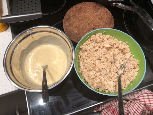 For the cook-off, I went with the aforementioned crab cake versus Nashville hot chicken. There are hundreds of crab cake concoctions out there but I opted for Andrew Zimmerman’s recipe which is definitely crab forward and uses saltine crackers as its binder. I did take the liberty of throwing in a pinch of Old Bay Seasoning for good measure. They fried up beautifully and really only need a bit of lemon as an accent.
