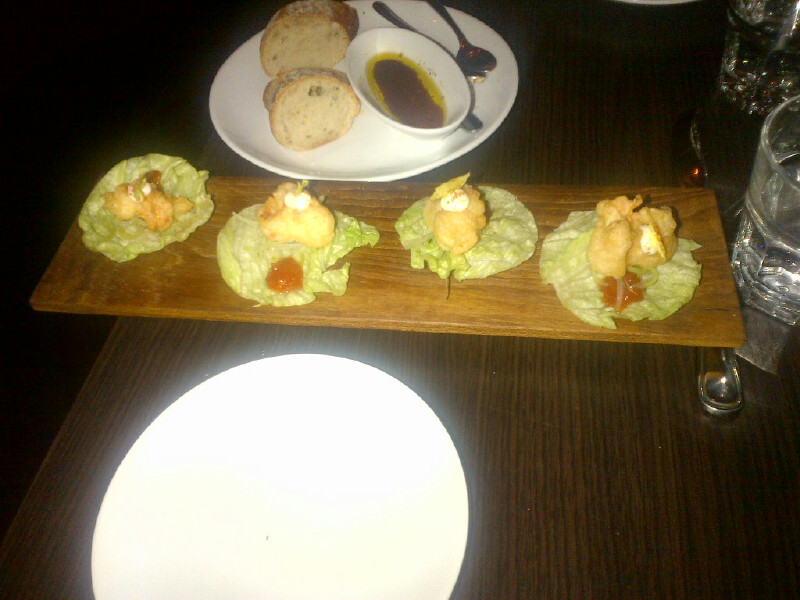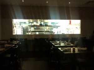 Upon arriving for my reservation, I was brought to a table with a great view of the open kitchen. Unlike some other restaurants which boast retro soda coolers or toque-wearing moose heads, the decor is a simple white tile, black accents and classy hardwood tables. I was impressed with the layout of the chef’s table which seats about 8 people. The wait staff were equally as classy, dressed in black. Even the chefs were traditionally dressed, donning crisp whites and black aprons.