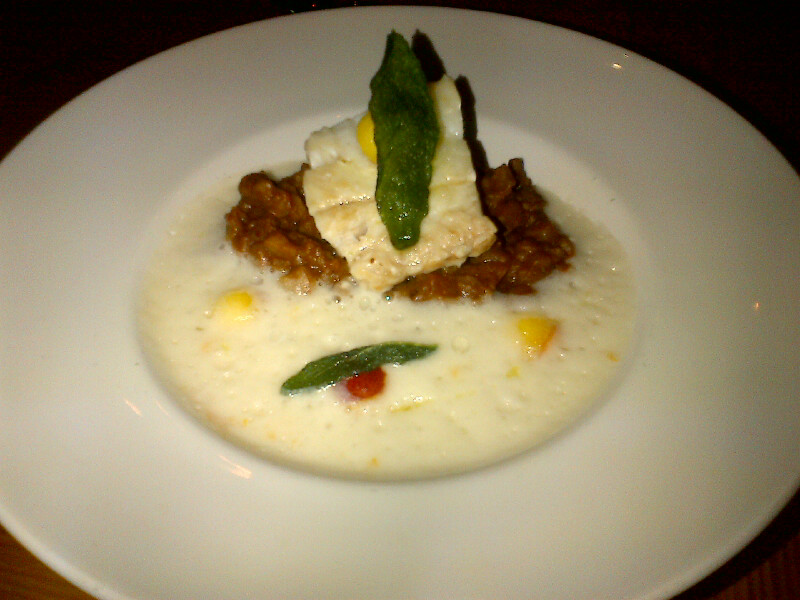 Here’s where the story begins. I was told that the elk tartare was phenomenal and that the elk was singled sourced out of an farm in Kitchener and 7 muscle groups were incorporated into the final product. Impressive! I was warned in advance that it lacked some of the attributes of the traditional tartare including eggs and scallions. It was presented eloquently with a cracker, a bitter orange sauce and a piece of charqui (elk jerky). It could of used a bit of seasoning but in the end the meat spoke for itself. It was phenomenal.