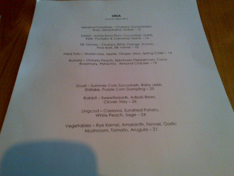 I’d consider Ursa a bit stubborn. It is next to impossible to find a current menu online since their website is nothing more than a holding page with an address and a phone number. When you do see the menu, it is quite small. In fact, a couple walked in and out after viewing the menu and only seeing goat, rabbit and lingcod as traditional entrees. On the other hand, there are both good quality vegetarian starters and mains on the menu which may appeal to some. Others will argue it is expensive for the amount of food but personally I find it pretty comparable to similar joints in the area.