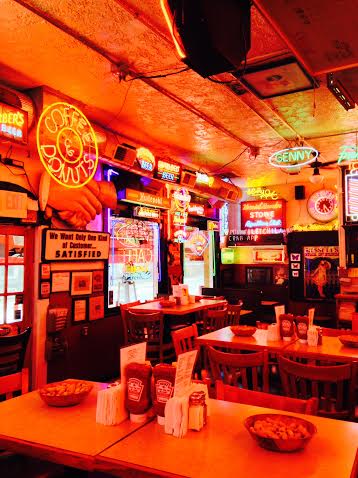 The exterior could easily be mistaken for an Ohio garage sale. Worn collectibles grace the entire length of the joint. Inside, there’s enough neon to put the Vegas strip to shame. We were greeted by Jim, a friendly maître d’ who informed us we were the first guests of the day and guided us to our seats. He was wearing the first of many Bluetooth earpieces I saw during my travels, an artifact that is near extinct north of the border but is alive and well in the USA.