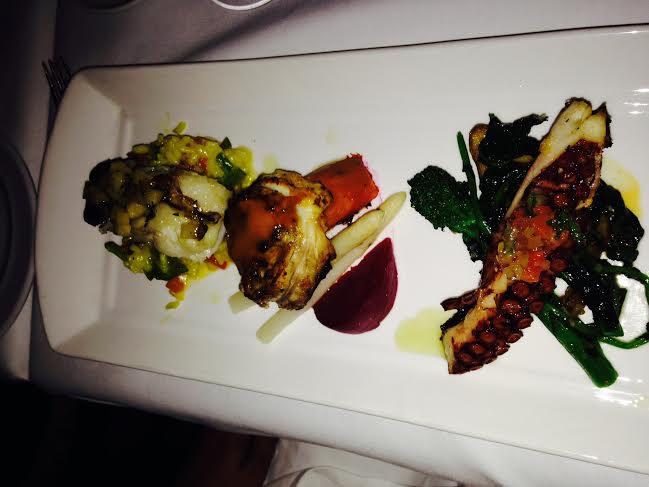 At this point I should mention that there was too much food. As a result of the storm, we had three no shows so we only had 9 instead of 12 people. Although we pointed it out and offered to pay for the committed 12, our request fell on deaf ears. Dish after dish came out, including three of each of the following pizzas: the classic margherita, the duck confit (with pear and mozzerella) and the cremini mushroom pizza finished with Gorgonzola and spices. Each was exactly what it promised, highlighted by the signature crust cooked at 900 degrees for 90 seconds. Normally I’m not a traditionalist, but the Margherita was the best of the bunch driven by the delicious tomato sauce.