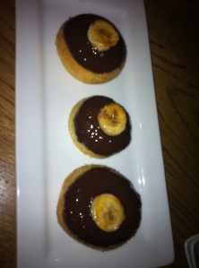 Jonathan’s third suggestion was the donuts.  In this case, who can turn down the chef’s creation, a peanut butter stuffed donut topped with a cocoa glaze and banana.   Better yet, they were served warm.  All I can say is…they taste how they look although a tad bit more filling would of been even better.