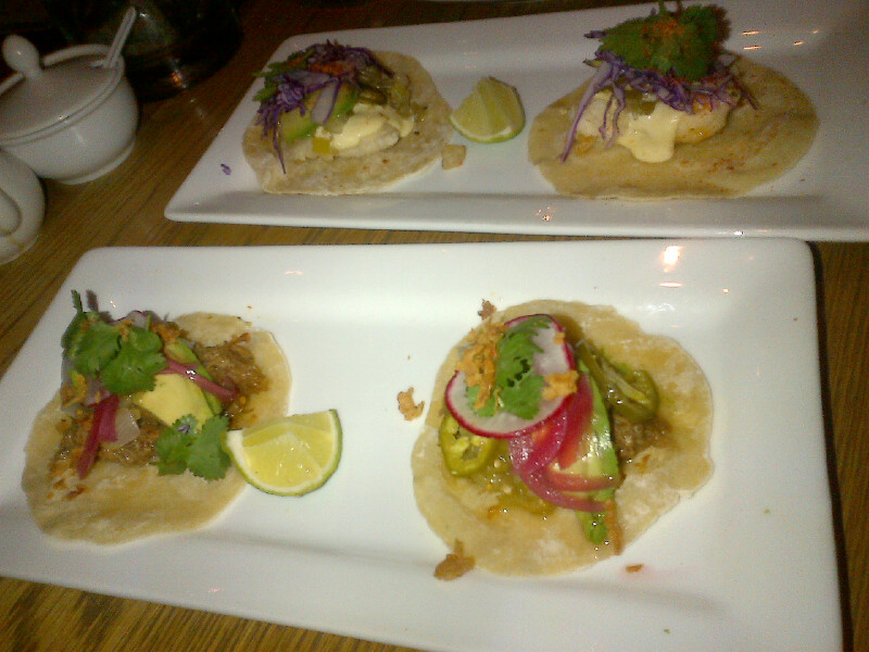 I tried the spicy beef and Bajan crispy fish tacos.  They are a bit small for $9 but the shells were delicate and tasty.  The spicy beef was hardly spicy but a bit of the homemade chili oil at the table helped. The Bajan tacos had a bit too much of the sauce which drown out the taste and texture of the fish a bit.   I agree with  their slogan, “Make Tacos, Not War” but can’t quite get to the state of “Make Tacos and then Make Love”.