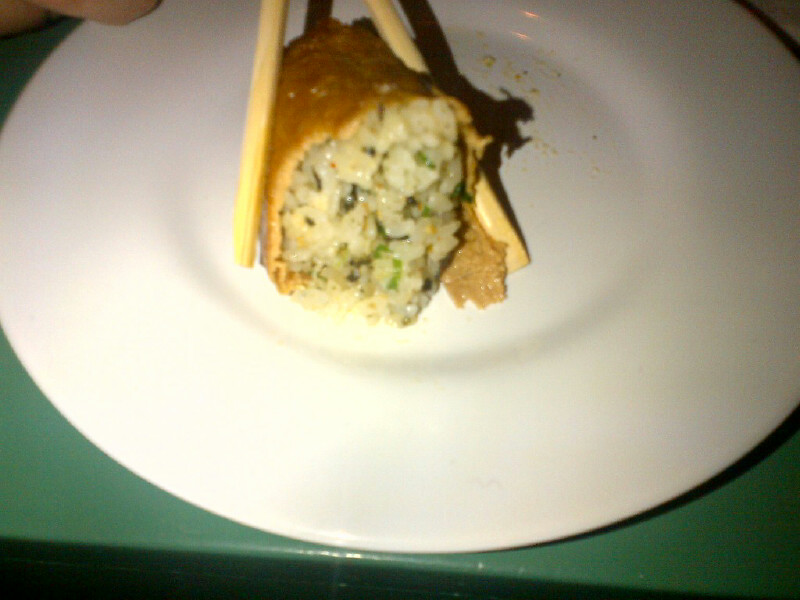 The salt cod inari was a terrific start to the meal….kind of like a first period english class with a cool teacher. The wrapper was a chewy but not an uncomfortable texture housing rice that was moist, not mushy. The salt cod added subtle spots of saltiness throughout the inners of the roll. The feisty dipping sauce was cleverly spread along the rim of the plate, appealing to both the dimension of visual appeal and sapidity.