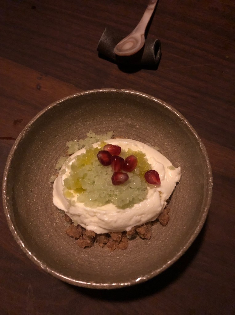 Given the quality the meal, there was no way I was declining dessert. I went with the oba, a simple yogurt based dessert flavored with meyer lemon, sorrel and pomegranate seed atop some crumble. The balance of tart, savory and sweet flavours was perfect but the contrasting textures and temperatures of the creamy yogurt, iced sorrel and crunchy base were even better. In fact, after finding some meyer lemons at Costco the next day, I’ve been searching the city (to no avail) for sorrel in an effort to recreate this dish at home…I may have to use mint or upland cress instead #firstworldproblems.
