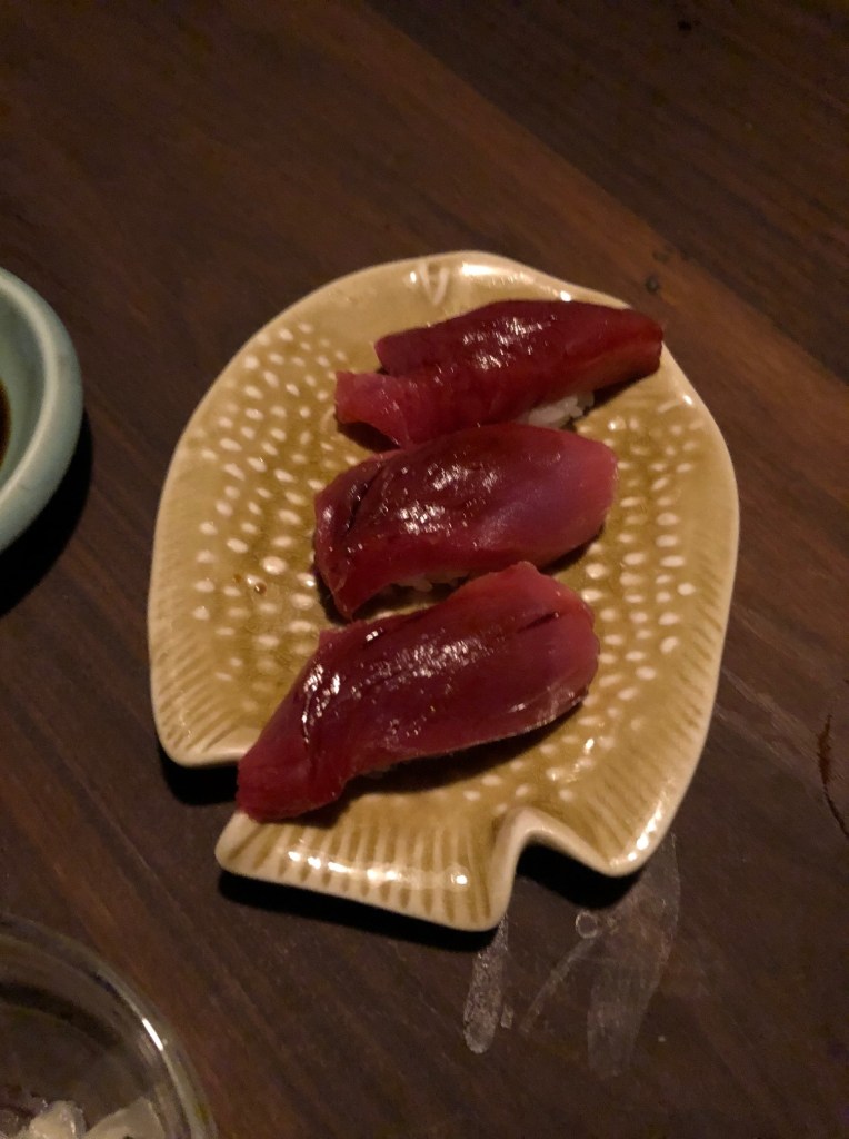 Once again the dishes were cleared in preparation for the sushi course. Fresh ginger and a beautiful soy sauce were laid on the table but were instructed that the chef would indicate whether it was needed. To dip or not to dip?..that was the question. We waiting in anticipation for direction as each dish was presented: