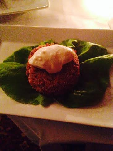 Once Sara got me a bit tipsy, she proceeded to show me a little more of her personality. I quickly realized she was a bit of an uptown girl…a quality vs quantity kind of woman. In addition, she was full of surprises by offering her upscale versions of food I may eat in a roadhouse with a girl named Becky. The chopped salad ($16), fries ($14) ,dumplings ($20) and rice pudding ($15), for example, were hardly pedestrian. The salad was garnished with cashew cheese instead of chunks of marble. The fries were shaped shredded potatoes bathed in schmaltz versus shoestrings in shortening. The dumplings were Prada-like purses darkened with squid ink and overstuffed with seafood and Bearnaise as opposed to generic bags full of ground pork and cabbage. The rice pudding was a rich and savory porridge peppered with corn and bacon and certainly not the senior special with sprinkled cinnamon and a dollop of whipped cream.