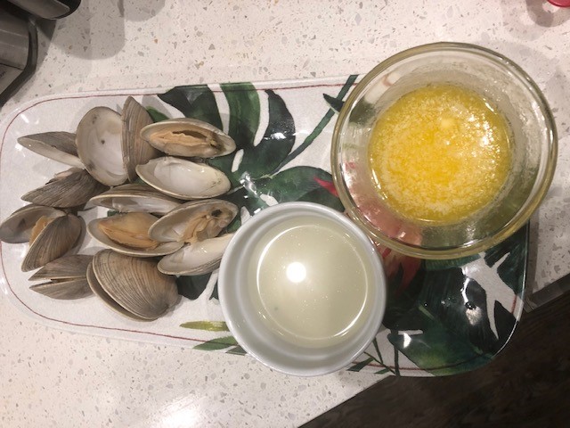 With the Seattle hot dog used for the wild card game, I had to renege on a previous post when I stated that I wouldn’t resort to the use of little neck clams to represent Seattle cuisine given my location and questionable freshness. I didn’t mind because I still reminisce about sucking back steamers steps from the Pike market in Seattle. With a quick trip to my local RCSS, I was set although I did cringe a little at the price tag which is always the case when buying seafood in a landlocked city. The advantage of littleneck clams is the simplicity of preparation; you simply soak them in some salt water for a while, steam them up and serve with a little melted butter and a bowl of the juice from the pot which adds a little salt and helps cleans the clam of any residual sand. The physiology of the clam itself even allows for easy dipping….it almost has a natural handle. The only downfall is the tendency for the bivalues to retain sand in all their nooks and crannies despite a good soak and stir.