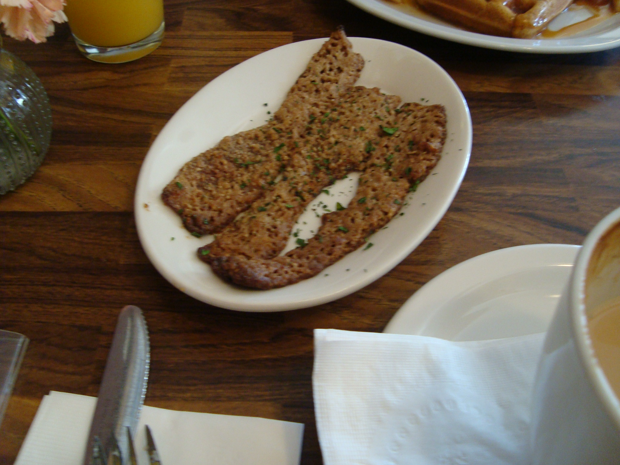Taste of Belgium boasts waffles done right so it seemed to be the ideal breakfast spot. The decor had the brick walls and tiled floor characteristic of Over-the-Rhine eateries. We were seated and greeted but a waiter with a definite chip (unfortunately not chocolate) on his shoulder. He was efficient but far from welcoming. I ordered a decent Americano and the McWaffle, a breakfast sandwich containing egg, bacon, cheese and served with a side of maple syrup. The waffle itself was far from the fluffy batter you might bake up at the free Hampton breakfast. It was much denser and more filling. It flirted with dryness but was helped by the syrup. The combination of everything made for a good but not remarkable bite that was a lot sweeter than the service.